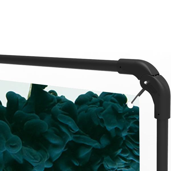 » Matte black powder coated frame allows your banner to be prominent.