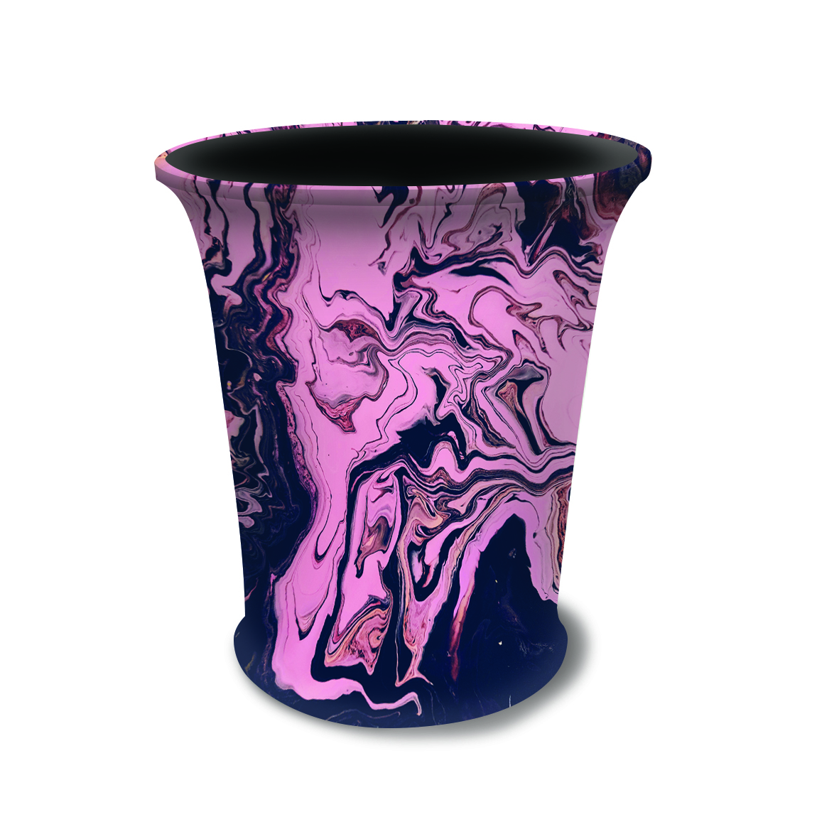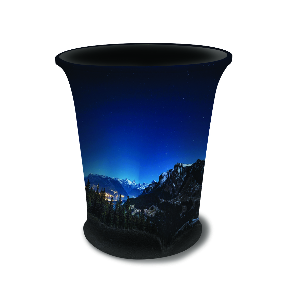 The KOREKT Fabric Tension Oval Counter features a sleek, matte finish tabletop, lightweight aluminium frame, and a fully printed stretch fabric graphic for a clean, professional look.