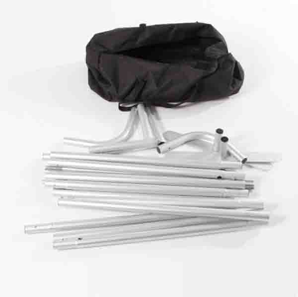 » The textile print fabric simply stretches over the tubular frame to create an eye-catching display.