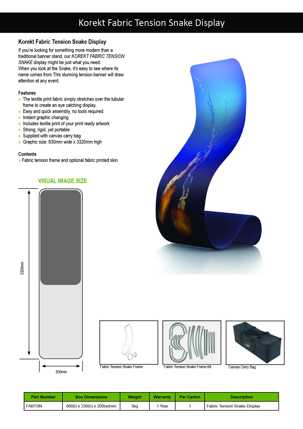 The KOREKT Fabric Tension Snake Display is a modern, eye-catching alternative to traditional banner stands.