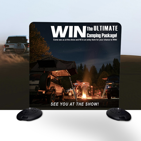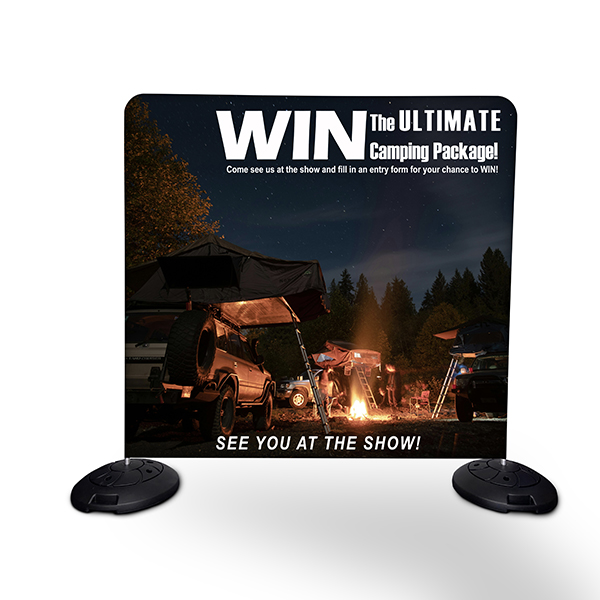 Now you can take your Fabric Tension II frames outside! With this sturdy and cost-effective base, setting up our media walls in outdoor environments is both practical and budget friendly. Whilst you still need to consider the weather when setting up, light winds and rain are no longer a problem.