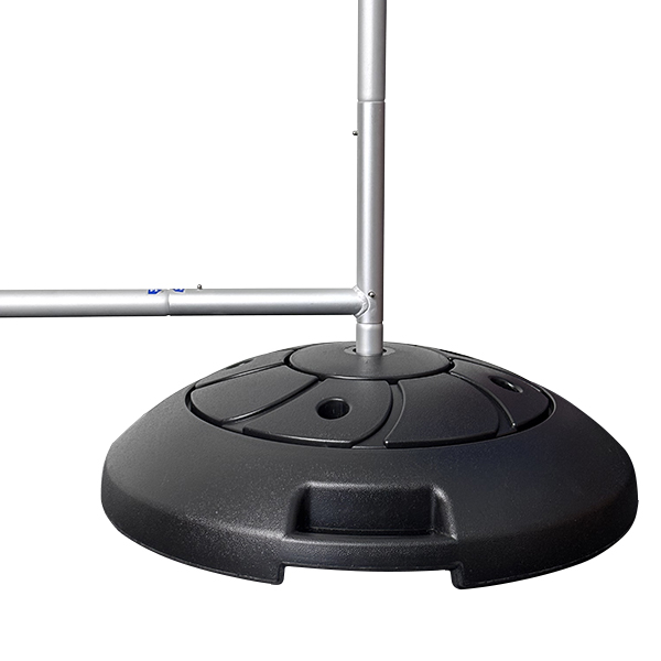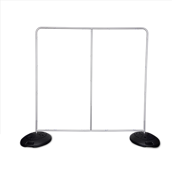 The KOREKT Fabric Tension Media Wall II with Water Base Option is a heavier duty aluminium tube frame coupled with a durable, water-fillable base that holds up to 20L, making it great for outdoor use.