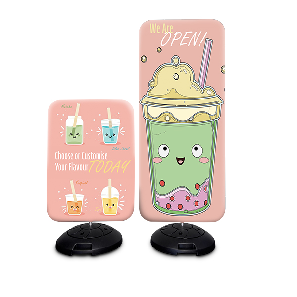 These easy-to-assemble displays feature a simple pole system and sturdy, lightweight construction. Each display includes a heavy-duty, sand/water fillable base with a built-in handle for added stability and transportability. With high-quality, double-sided seamless printing, you’ll maximize visibility and ensure your brand stands out from the competition!