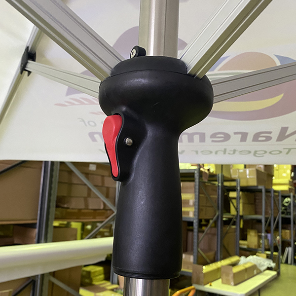 Our deluxe “Push up” frame with a stainless-steel pole and aluminium upper frame wont rust, is durable, light and competitively priced. Along with our custom printed 500D canopies which can have a valance, or no valance and one of our wide range of bases, you can’t go wrong for the price.